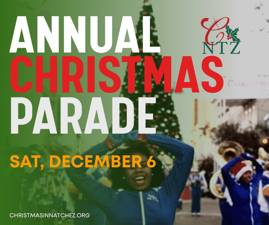 Join us for the Annual Christmas Parade on Saturday, December 2nd in downtown Natchez!