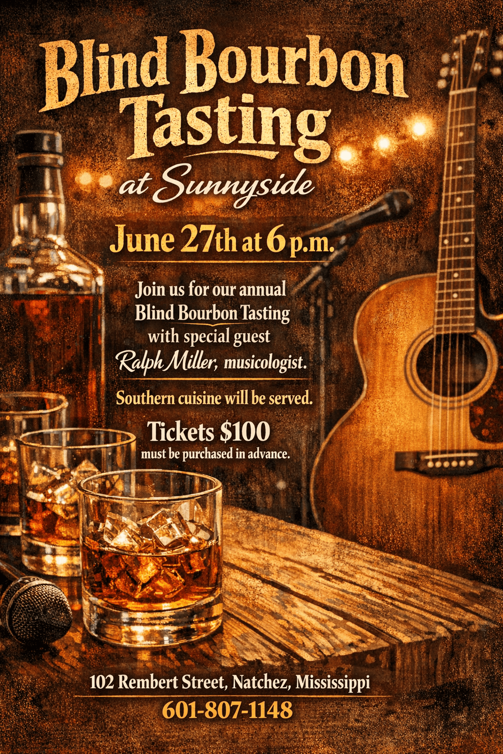 Indulge in an expertly curated selection of distinguished bourbons and take part in selecting the evening’s standout pour. The experience will be complemented by delicious Southern cuisine crafted by Colleen Wilkins and live music by esteemed musicologist Ralph Miller, creating an unforgettable evening of flavor and culture.