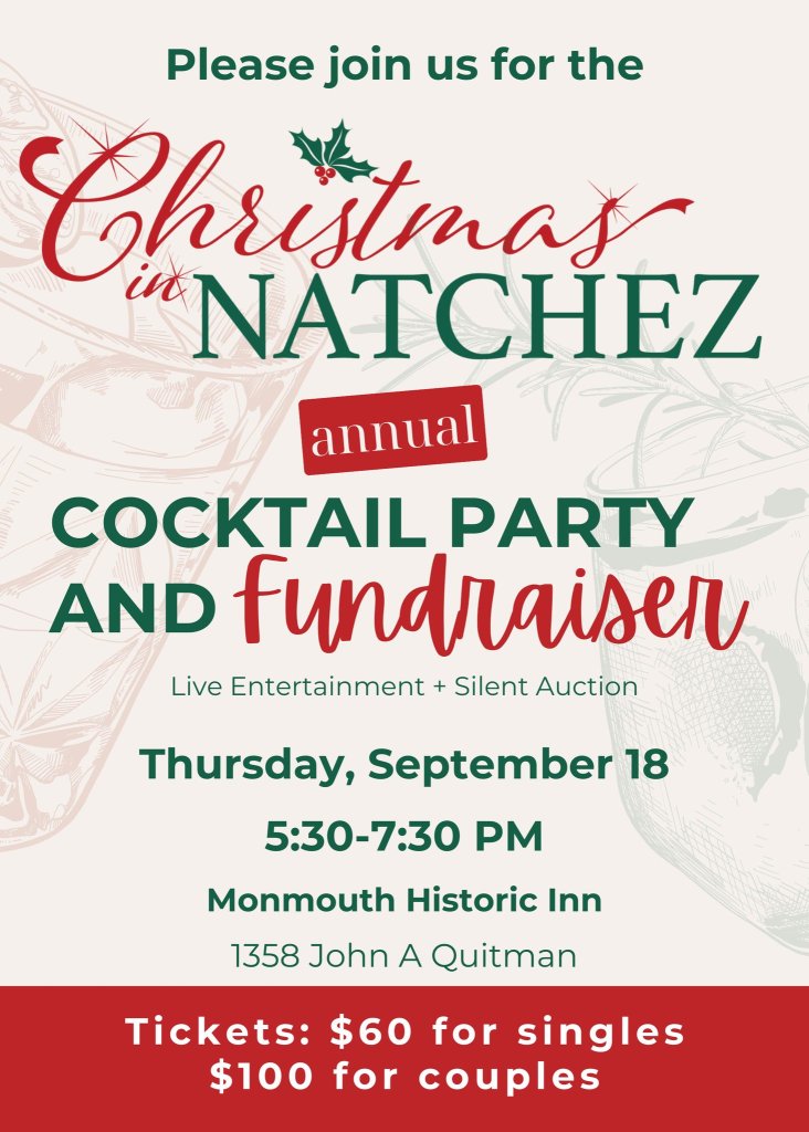 Please join us for the Annual Christmas in Natchez cocktail party + fundraiser!