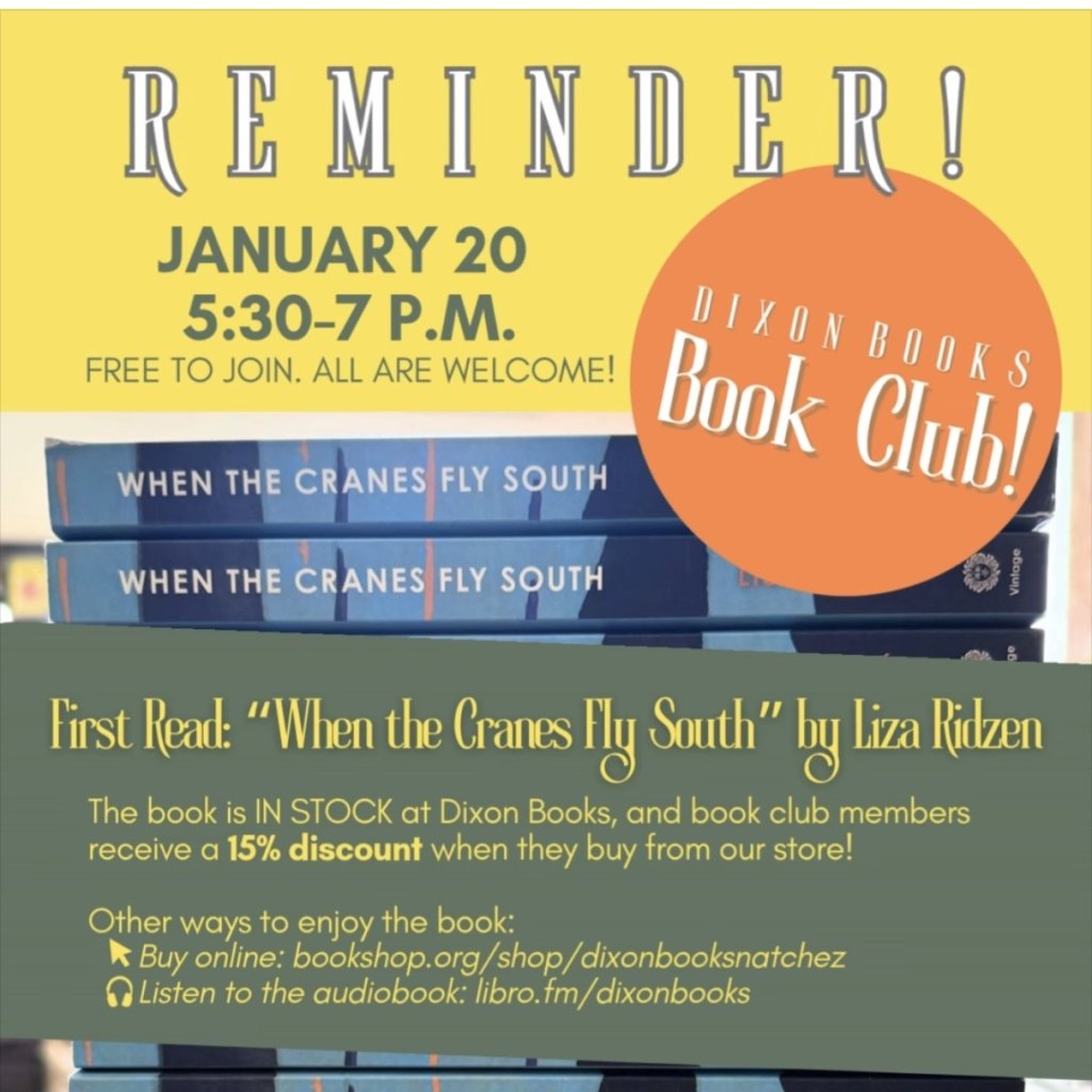 Come join us for our 1st Dixon Books Book Club meeting! The book is available in store for 15% off or online. All are welcome – no reservation necessary!