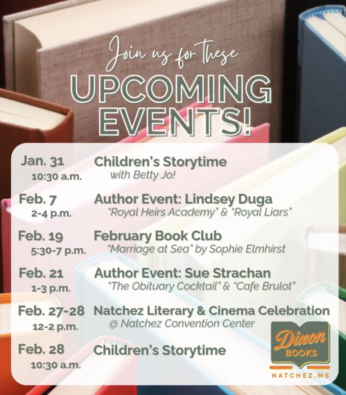-SUE STRCHAN AUTHOR EVENT ON FEBRUARY 21, 2026 FROM 1:00 PM – 3:00 PM