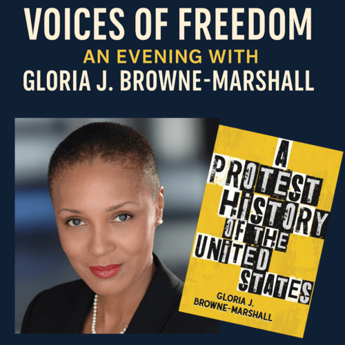 Join us for an unforgettable evening of reflection, resilience, and resistance at Voices of Freedom, a banquet honoring the power of civic action and the enduring fight for justice in America. Our keynote speaker, legal scholar, playwright, and author Gloria J. Browne-Marshall, will draw from her acclaimed book A Protest History of the United States to explore the stories of ordinary people who demanded extraordinary change—from the American Revolution to today.