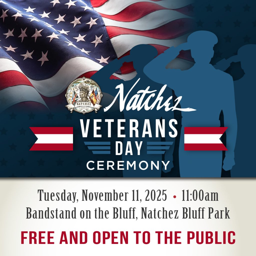 Join us this Veterans Day, Tuesday, November 11, 2025, as we honor those who served our country at the Historic Bandstand on the Bluff.
