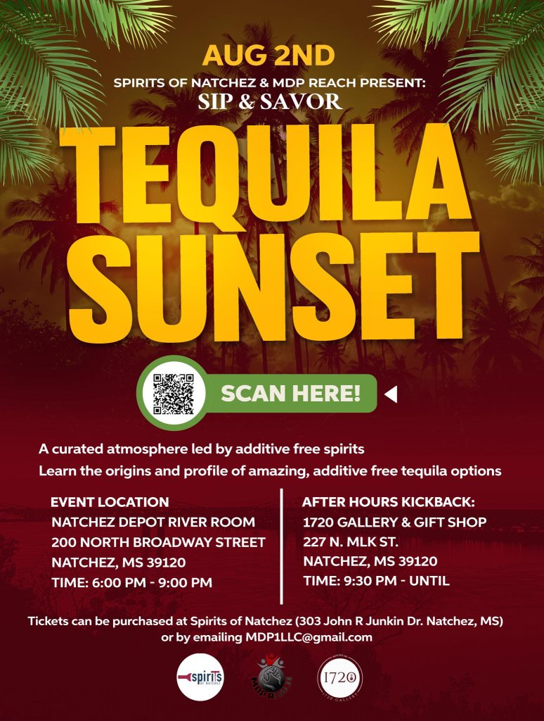 Spirits of Natchez, and MDP Reach present Sip & Savor Tequila Sunset on August 2nd!