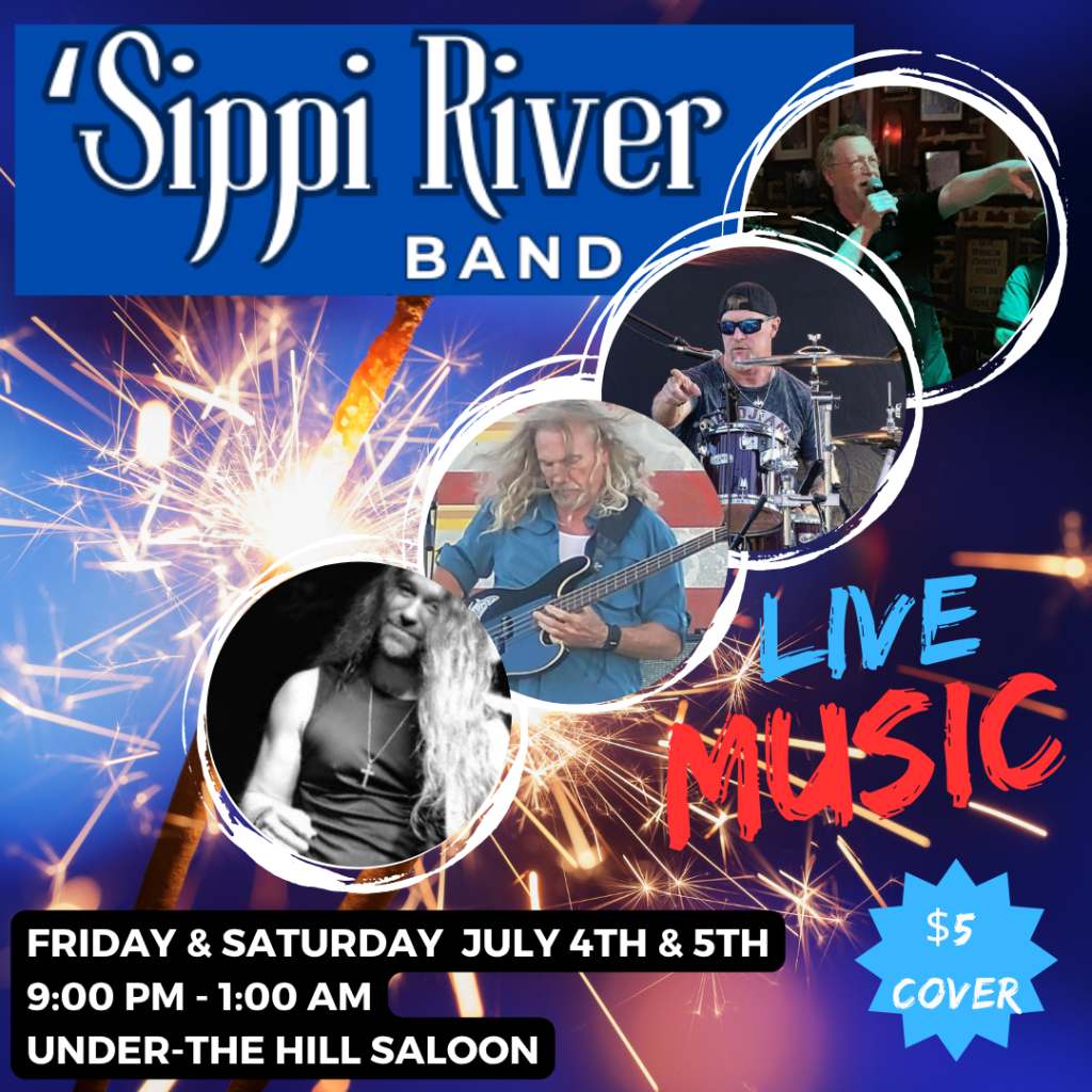 Join us at Under the Hill Saloon on Friday & Saturday, July 4th and 5th to hear the ‘Sippi River Band perform live!
