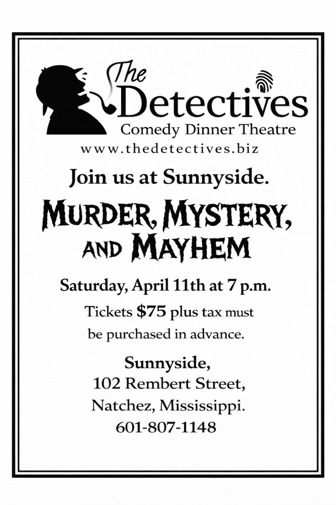 Join us for MURDER, MYSTERY, MAYHEM & MEAL at Sunnyside!
