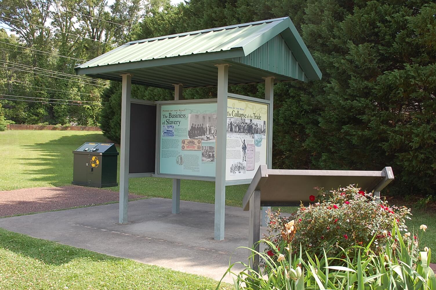 The Forks of the Road site was one of the largest slave market in the United States. Today, visitors will find information panels discussing the slave trade in Natchez and around the South, as well as slave chains laid in concrete.