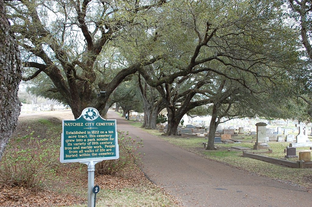 The Natchez City Cemetery is listed on the National Register of Historic places, established in 1822 when remains were moved to the present location from Memorial Park (located behind St. Mary’s Basilica downtown). Tombstone inscriptions embellished by romantic and mysterious tales draw portraits of the dearly departed interned here. Bring a good pair of walking shoes and make the Natchez City Cemetery a good three hour stop on your itinerary. As historic cemeteries go, it’s unforgettable.